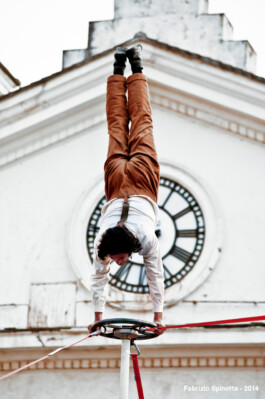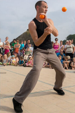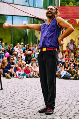Auf der dritten Sprosse einer Leiter, die man mit dem Mund auf dem Schlappseil hält, mit Feuer jonglieren - für Juriy scheint Gravitation kein ausreichender Grund zu sein, sich aufhalten zu lassen. Ausgebildet in Turin und seit fast 20 Jahren als Performer tätig, kommt uns Juriy am Sonntag besuchen und präsentiert Jonglage und waghalsige Equilibristik auf dem Seil!